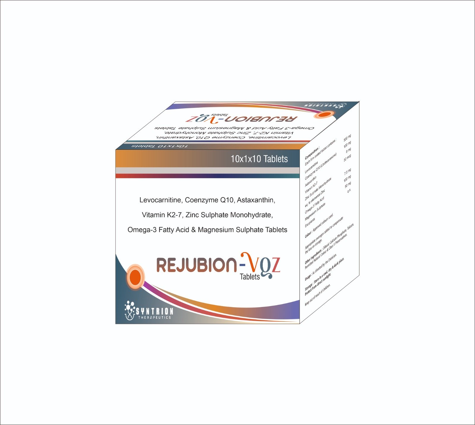 Rejubion-VQZ Tablets: Levocarnitine, Coenzyme Q10, Astaxanthin, Vitamin K2-7, Zinc Sulphate Monohydrate, Omega-3 Fatty Acid & Magnesium Sulphate