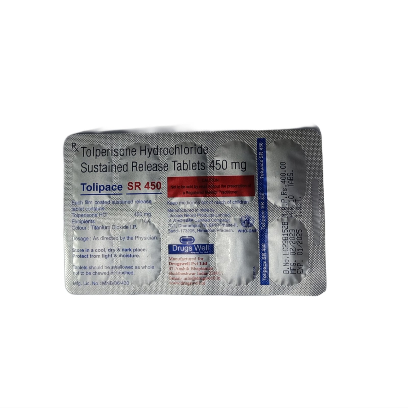 Tolipace SR 450 Tablet belongs to a group of medicines known as centrally acting muscle relaxants. Tolipace SR 450 Tablet used to treat acute musculoskeletal pain (pain within the body starts from muscles, bones, or joints). Acute musculoskeletal pain is pain perceived within an area of the body and assumed to occur from the muscles, joints, or bones in that area. Excluded from the definition is pain due to severe local causes, such as fractures, tumors, or infections, and general and neural reasons.